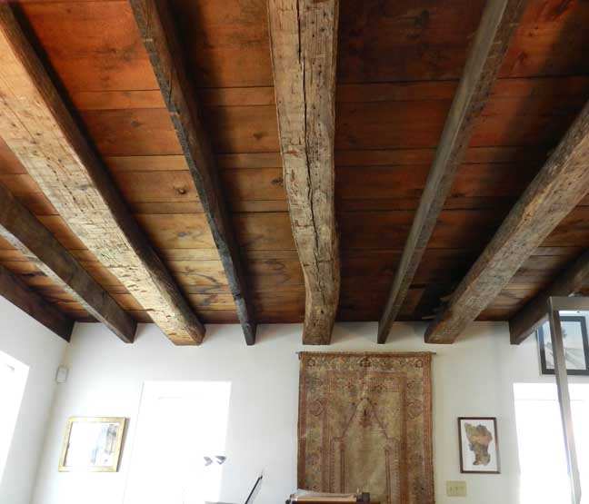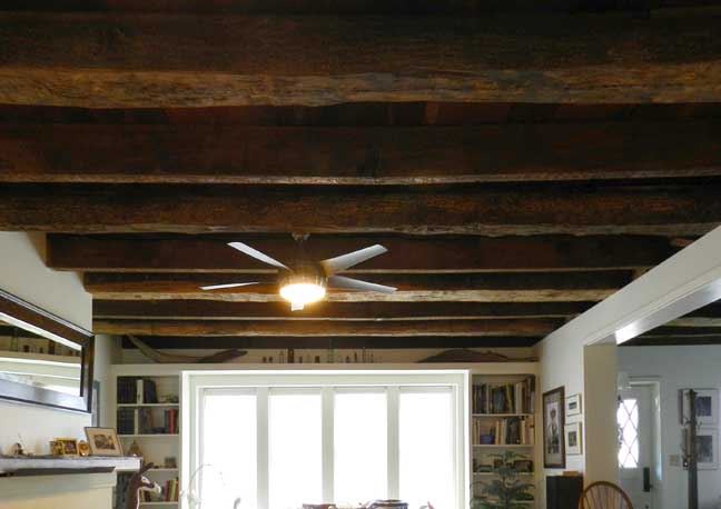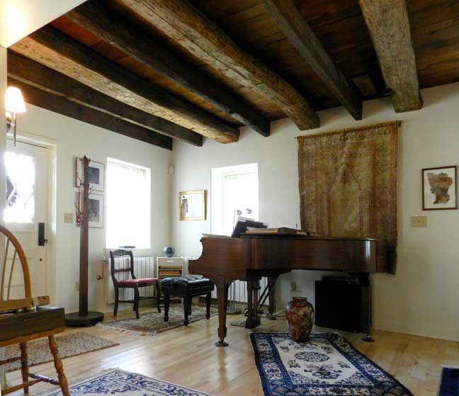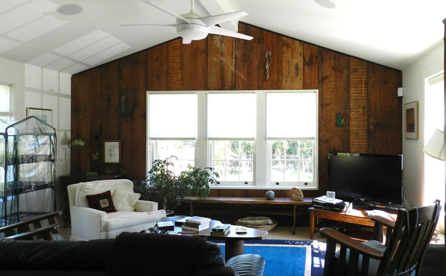 Family Room![]() North elevations (rear). Note the back - the Kitchen - of the West House at right. Photo courtesy of Caroline and William Duax. The next illustration below shows the interior Family Room addition. ![]() Room was created by removing the northern kitchen wall and creating the addition Family Room. The wood planks were between the former living room and utility room with two from the former kitchen. ![]() Family Room: The wood planks were between the former living room and utility room with two from the former kitchen. |