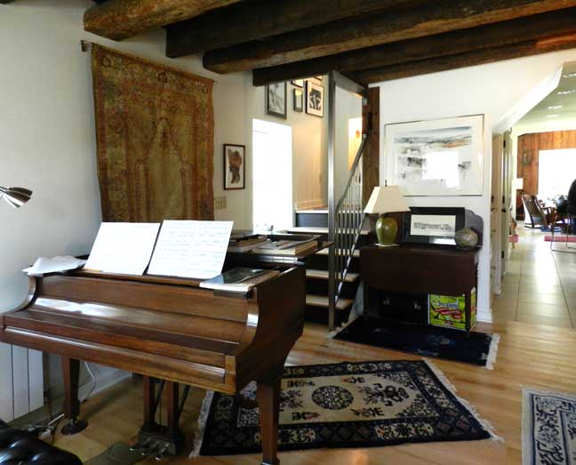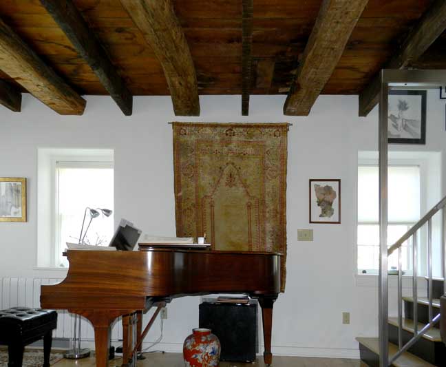Foyer/music room![]() Foyer/music room: From 1904 to present, this room was the dining room. Original wooden ceiling in foyer/music room and in the preseent dining room. ![]() Foyer/music room: ![]() Foyer/music room: ![]() Foyer/music room: Original ceiling detail ![]() Foyer/music room ![]() Foyer/music room: Note 2 works of art on and above table (closeups in next 2 illustrations below) ![]() Foyer/music room: Painting of Central New York by Barbara Kellogg |