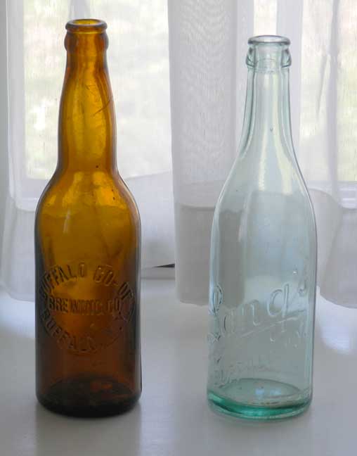 Dining Room ![]() Dining Room ![]() Dining Room: Original wooden ceiling in foyer/music room and in dining room. ![]() Dining Room: Mantel made from a black walnut tree removed from the courtyard after the October 2006 storm. The trunk was cut into four 8' lengths. ![]() Two antique beer bottles found on the property ![]() Buffalo Co-op beer bottle label. Grover Cleveland was part owner of the company and reputedly served only beer made in Buffalo in the White House during his tenure as President. ![]() Lang's Brewery |