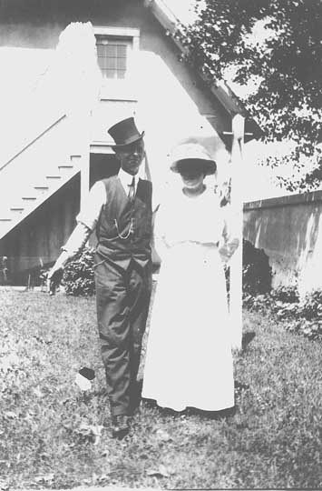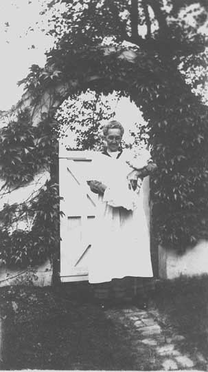 ![]() #1 - Charlie and Martha Tong in front of south end of barn. Charlie had been Hedstrom's English chaufeur when Arthur and Catherine Hedstom lived on Delaware Ave. in Buffalo. ![]() #2 - Arthur Tong in a WWI uniform at one of the concrete wall garden gate doors (not extant in 2012). Arthur was Charlie and Martha’s only child. (Arthur's son: Earl.) ![]() #3 - Earl Tong’s grandmother, Anna Riffer Bernhardt, and Earl as a baby at same garden gate, 1922. Anna Riffer Bernhardt, was Arthur’s mother-in-law. ![]() #4 - Arthur Tongat the east garden gate, door open. You can see the open expanse on the other side of the wall and a store wall in the background. That is the wall which runs down Getzville Road. The area was an open orchard of apple and pear trees. Note: the pattern of ivy growth is different from photos ##2 and 3. # #2 and 3 were taken in a different year or more likely at the east garden wall gate. ![]() #5 - Martha Tong with Earl. Getzville stone wall, pear and apple trees in back ground. ![]() #6 - Martha, Earl, unknown boy, and a family friend, Max Engel. Engel had lost his legs in a railroad accident. ![]() #7 - Elise Bell, a friend of Martha. Elise Ball worked across the street a the Copeland House, which is now part of Daemon College North side of archway. You can see the diamond latticed windows of the archway room. ![]() #8 - Martha and Elise Bell in front of wall and “east house” where Tongs lived. ![]() #9 - Charlie and Martha Tong on steps of Hedstom mansion house. According to Earl, Charlie would drive the Hedstoms to West Virginia for the winter months. Charlie and Martha would move into the mansion for those months “to keep an eye on the plumbing” during cold Buffalo winters. ![]() #10 - Earl Tong in front of wall and East House ![]() #11 - Martha dressed up as Santa in front of East House east side extension. ![]() #12 - May have been one of Hedstrom’s early cars or a friend’s. ![]() #13 - Charlie Tong in a Hedstrom car. ![]() #14 - Charlie Tong by some piece of farm equipment. North end of 1904 barn in background. |