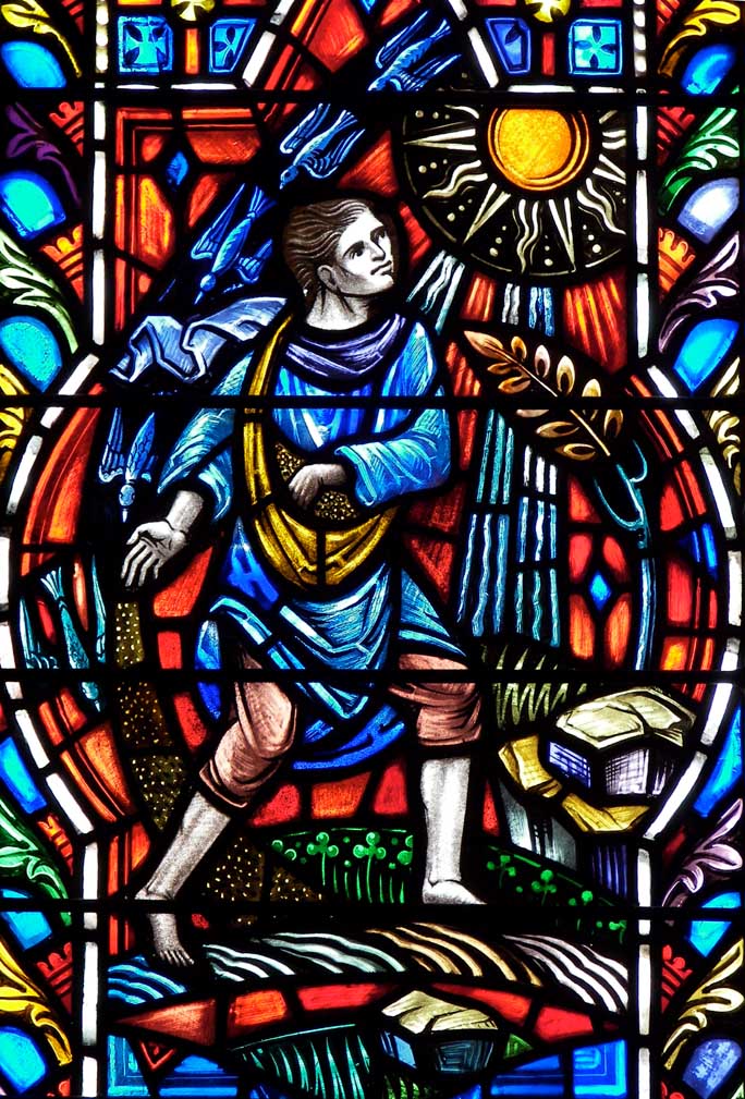 - The Sower - Mark 4:3-9 The Sower in the center medallion, illustrates the sower casting his seed,