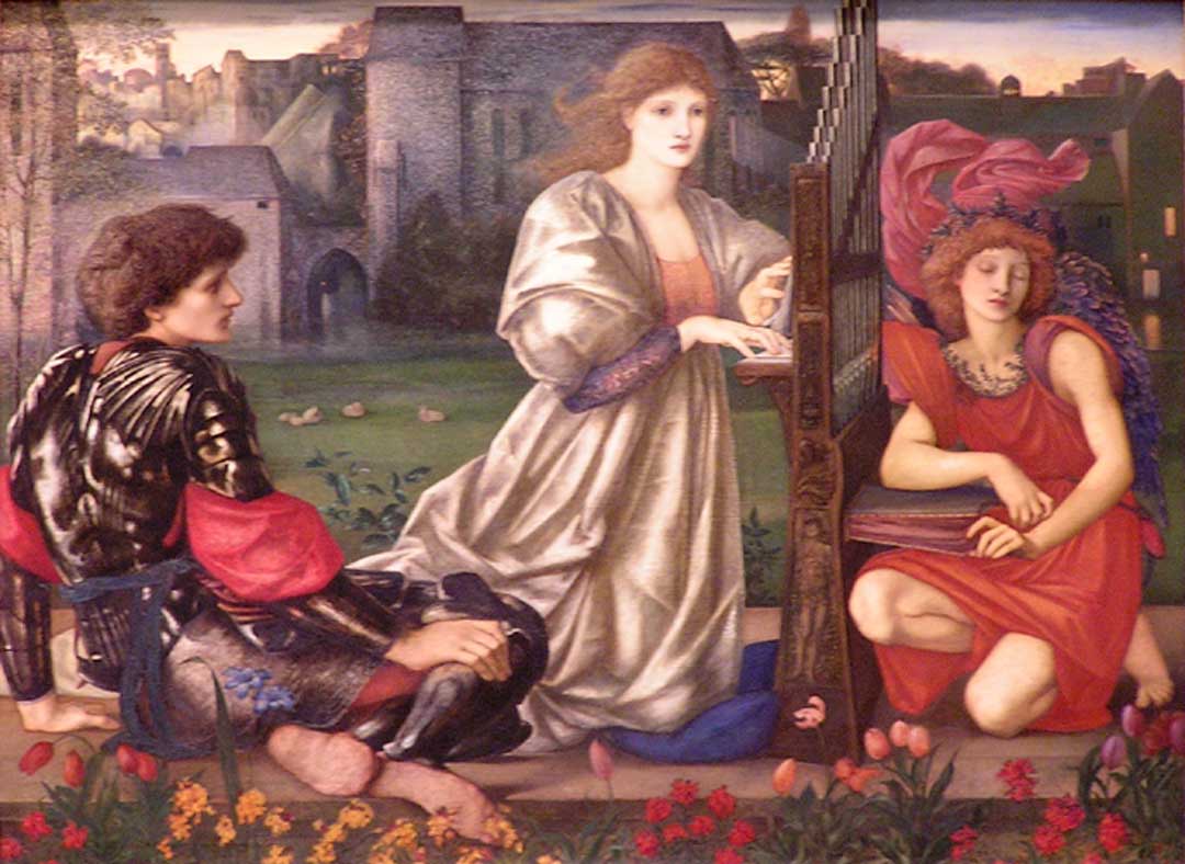 Burne-Jones's Love Song, with its figures reminiscent of the fifteenth-century Venetian painter Vittore Carpaccio and its "Arthurian" landscape bathed in evening light, reflects the profound influence of both the Italian Renaissance and the gothicizing Pre-Raphaelite movement.