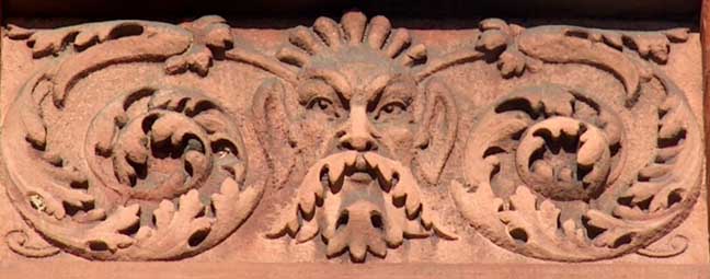 Most Green Men are easily spotted. Their images decorate doors, chancel screens, choir stalls, pew ends, capitals, corbels and stained glass windows. Others, hidden from prominent view, are tucked away in dark corners, or gaze down upon the congregation from vaulted ceilings lost in shadows. If you take your search to the streets, you will often find their weather-scared faces staring down at you from above doorways, window casements or cornices. Images of the Green Man were a very popular form of exterior ornamentation in the Victorian and Beaux Arts periods on both sides of the Atlantic.