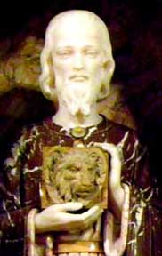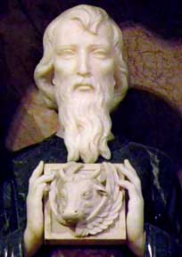 children, filled with the Holy Spirit he died at the age of 84 years." Depictions: Ox with wings,