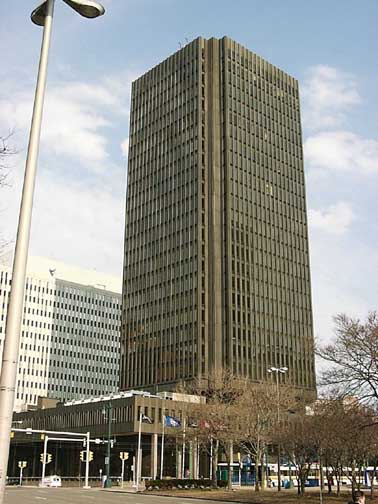 Large architectural firms such as Harrison and Abramovitz and Skidmore, Owings, and Merrill [Marine Midland Bank] did much to popularize modern architecture around the world after World War II.