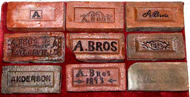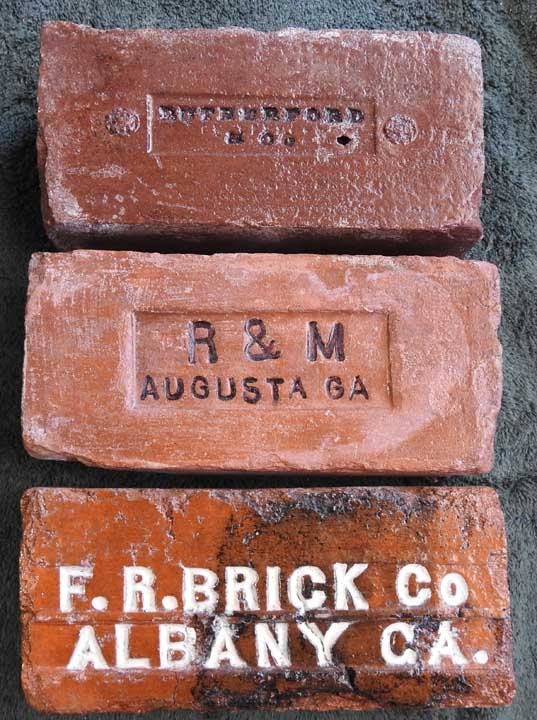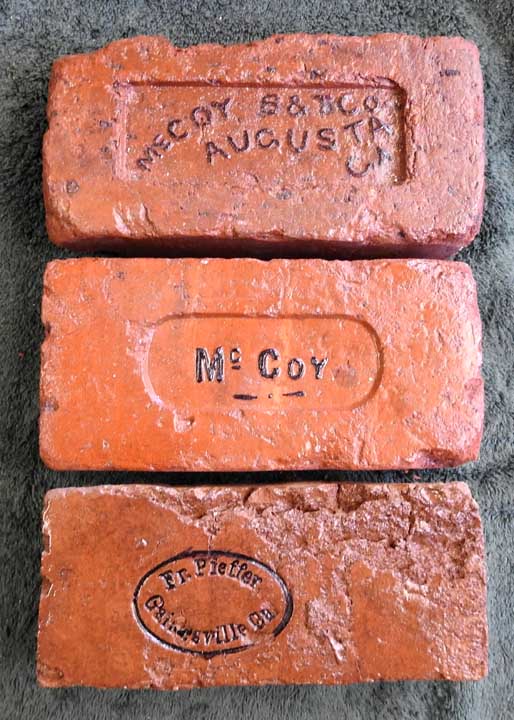 Three bricks at left are all McAlester and McAlister Co. bricks. Note the two different spellings.