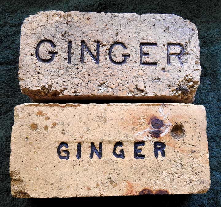 Upper brick: Seneca Co.-made brick for Buffalo, Kansas (new brick)