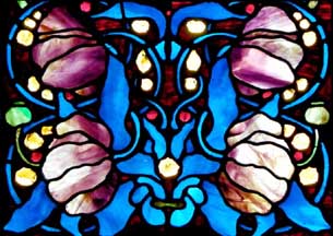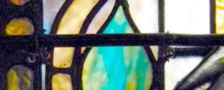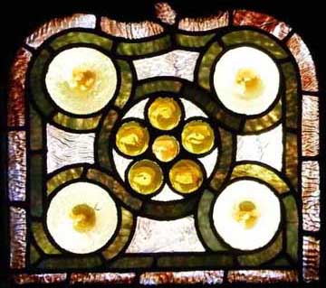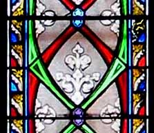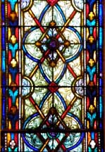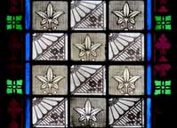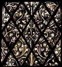 "Quarry windows were an extension of grisaille (above) windows and great favorites of fifteenth century England. The quarries were diamond shaped and individually decorated with small stained glass emblems which might include flowers, insects, leaves, and heraldic devices." - Nola Huse Tutag, Discovering Stained Glass in Detroit, Wayne State University Press, 1987, p.135 "During the