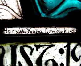 To be distinguished from stained glass suppliers (e.g., Kokomo above), although studios may work with suppliers to develop an original color, texture, etc. Studios (or designers in the studio) sometime sign their work.