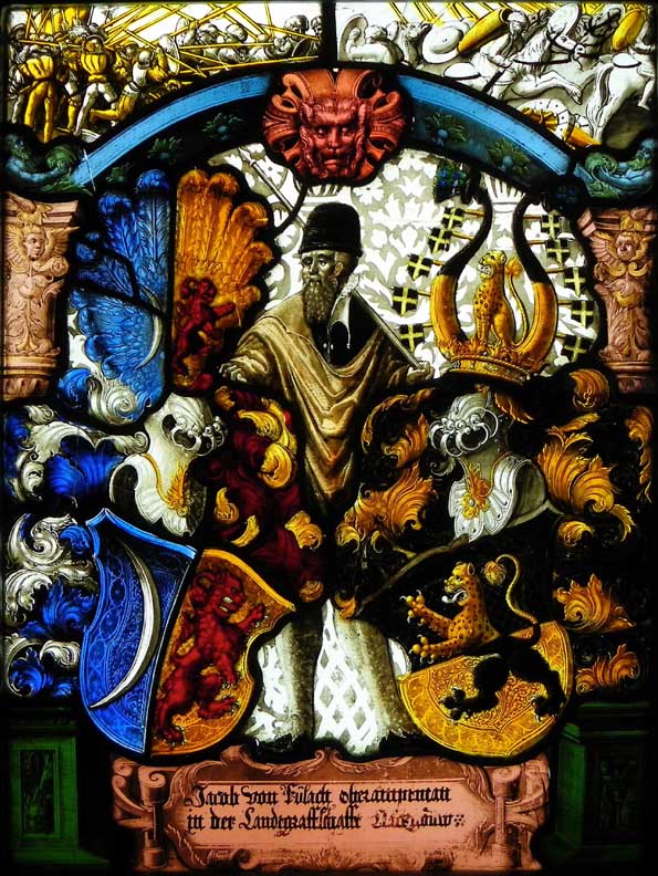 During the Renaissance, small stained glass panels were decorated with family crests and images copied from engravings. These panels were displayed in private homes and public buildings