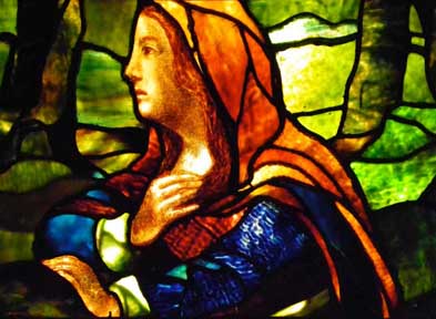 This woman was an artist, a contemporary of Tiffany and John LaFarge, both of whom she worked with or for. She even became business partners with LaFarge, then she sued the company and started her own. Unmarried, deeply talented, whipsmart and born into money, Tillinghast had a way with glass that I think neither LaFarge nor Tiffany (and his countless workers whose names have melted away under his own) come close to touching. Certainly each of the three, the veritable triumvirate of 20th century glass making, has his and her own aesthetic.
