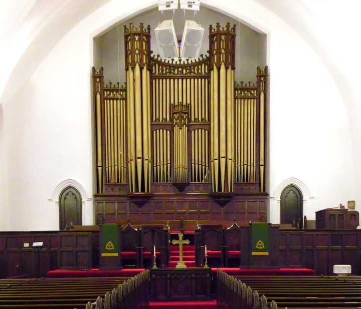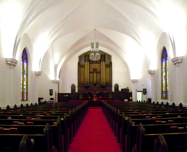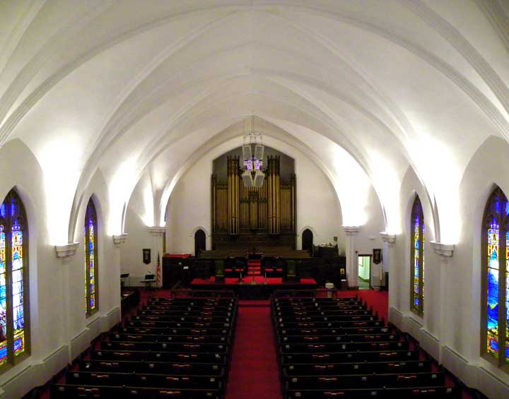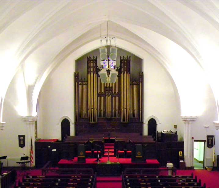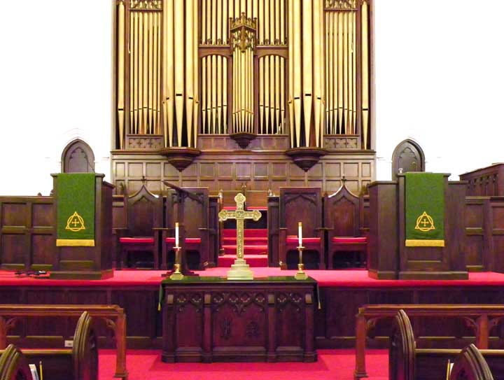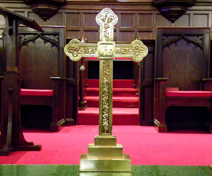 ![]() Nave and chancel ![]() ![]() Note choir seating in the chancel. ![]() ![]() ![]() ![]() ![]() Cross bottony ![]() Tiffany stained glass window. Note the pews for the choir in the chancel. Many American churches relegate the choir to a loft in the front of the church above the narthex. |