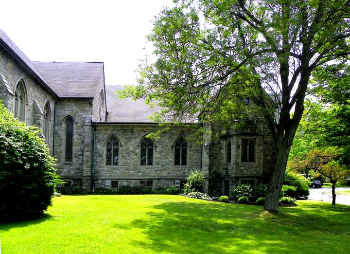 Main Street - 1878 horizontal elevation to the west (right) of the 1928 church![]() Far left: the current 1928 church, including the west transept |