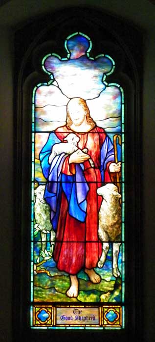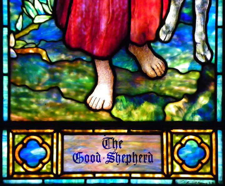 The Good Shepherd![]() The Good Shepherd By Louis Tiffany Details below: ![]() Border and sky depicted with opalescent glass ![]() Face and hands are enameled (vs. opalescent glass) ![]() ![]() Mottled stained glass. Note signature in lower right. See next photo for blow-up. ![]() |