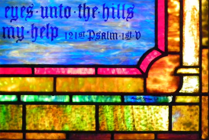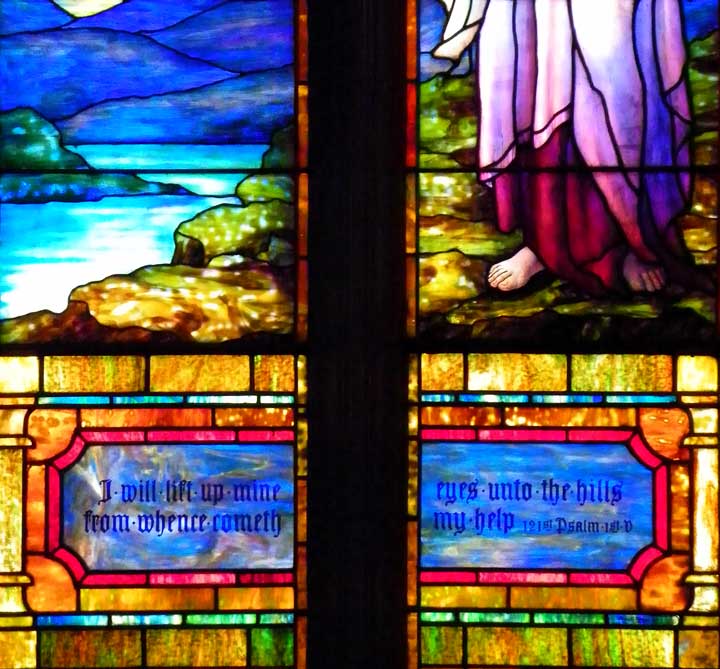 I Will Lift Mine Eyes Unto the Hills, From Whence Cometh My Help![]() ![]() ![]() Opalescent stained glass and mottled stained glass ![]() Note lily ![]() Psalm 121 ![]() Note signature in lower right ![]() Signature: Louis C. Tiffany, N. Y. |