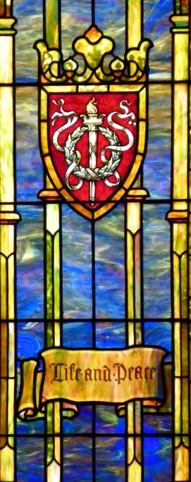 Life and Peace and Victory Over Death![]() Details: ![]() Left panel shield: Torch and Wreath and Ribbon ![]() Right panel shield: Inverted torch and Ribbon and Branch |