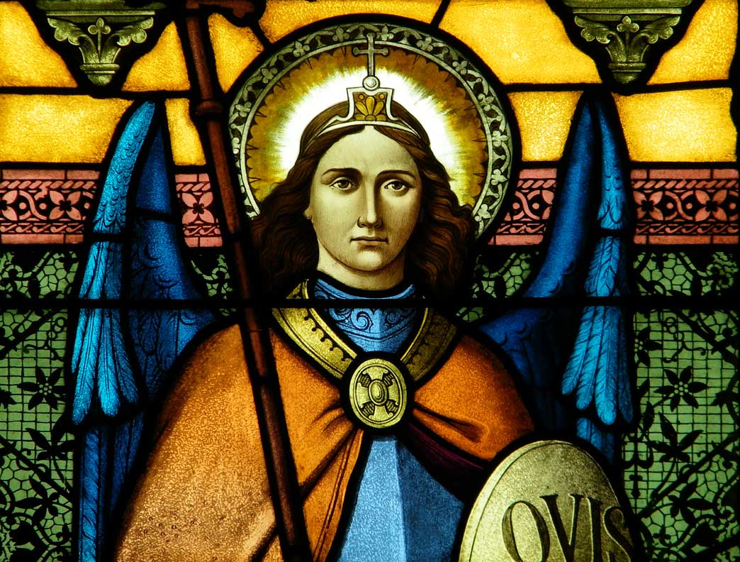 | St. Michael - Detail St. Michael is an archangel in Jewish, Christian and Islamic tradition. He is viewed as the field commander of the Army of God. He is mentioned by name in the Book of Daniel, the Book of Jude and the Book of Revelation. In the English epic poem Paradise Lost by John Milton, Michael commands the army of angels loyal to God against the rebel forces of Satan. Armed with a sword from God's armory, he bests Satan in personal combat, wounding his side. See Iconography in Art and Architecture: Saint Michael LARGER SIZE beneath top photo |