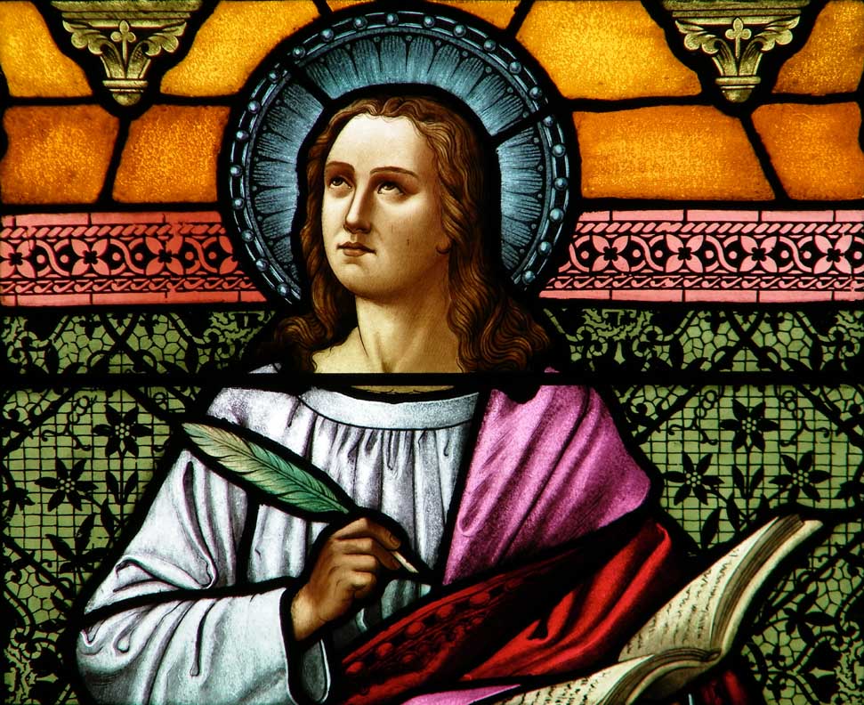 St. John the Evangelist - Detail Traditionally the name used to refer to the author of the Gospel of John, the First, Second and Third Epistles of John, and the Book of Revelation. See Iconography in Art and Architecture: St. John the Evangelist LARGER SIZE beneath top photo |