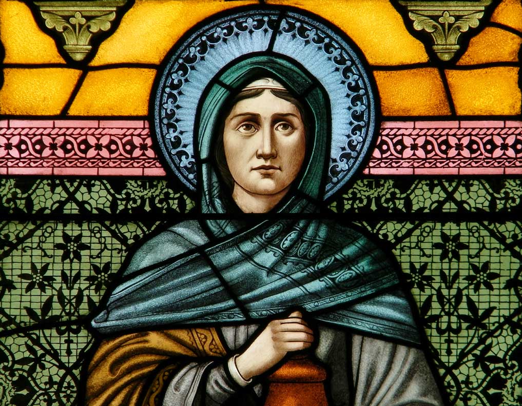 St. Salome - Detail St. Salome was the wife of Zebedee and mother of James and John (Matt. 27: 56; cf. Matt. 20: 20), one of the women from Galilee who was present at the crucifixion (Mark 15: 40) and came to the tomb (Mark 16: 1) and received the message that Jesus had been raised. See Iconography in Art and Architecture: Saint Salome LARGER SIZE beneath top photo |