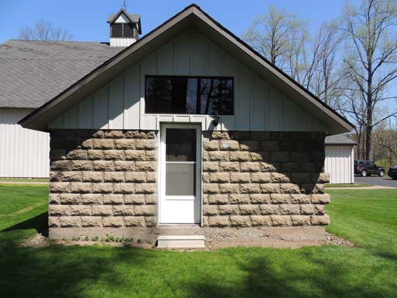 ![]() Donated barn ... Cottage built by nuns for the visiting priest ![]() ![]() Board and batten siding ![]() Board and batten siding in gable ... Concrete blocks ![]() |