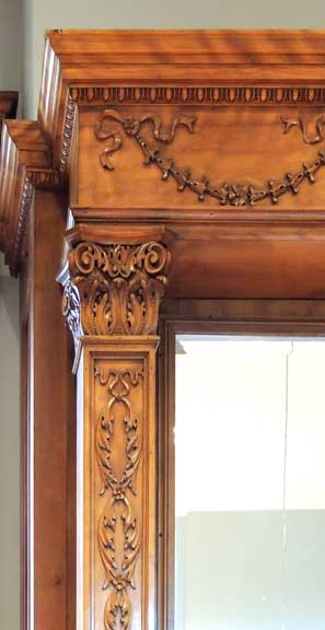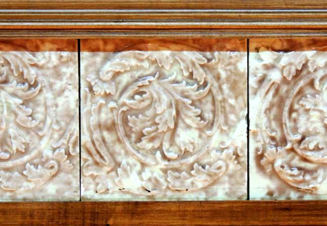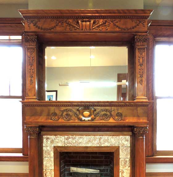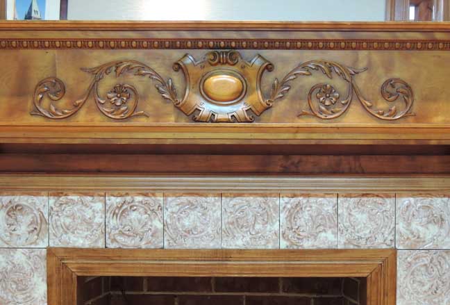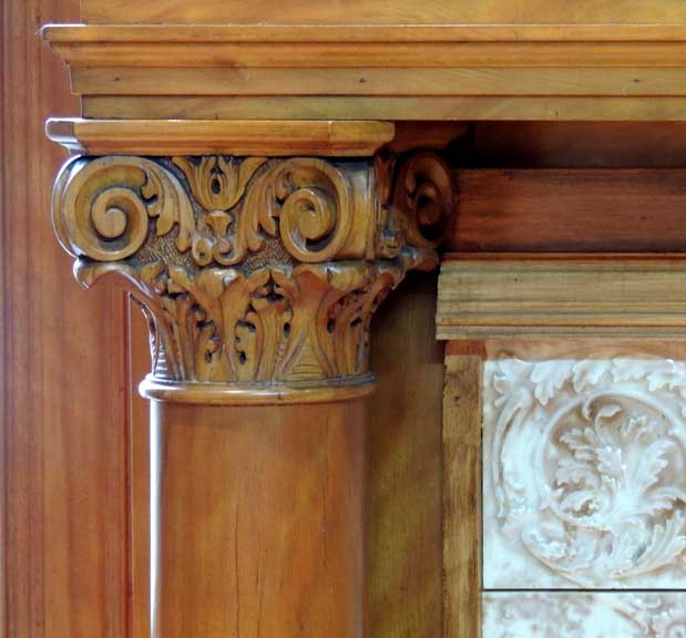 Parlor![]() ... parquet floor. ![]() ![]() Victorian mantelpiece features decorated double friezes. ![]() Upper frieze: Egg-and-dart molding at top .. Flanking torches and ribbons ![]() Upper frieze: Bellflower swag ... Roman Corinthian capital on square column supporting entablature ![]() Upper frieze: Roman Corinthian capital on square column supporting entablature ![]() Lower frieze detail: Egg-and-dart molding at top ... Note C scrolls flanking center cartouche ... Foliated glazed tiles ![]() Lower frieze detail: Egg-and-dart molding at top ![]() Lower frieze detail: Roman Corinthian capital on engaged column supporting entablature ![]() Lower frieze detail ![]() Glazed tile hearth ![]() Parquet floor |