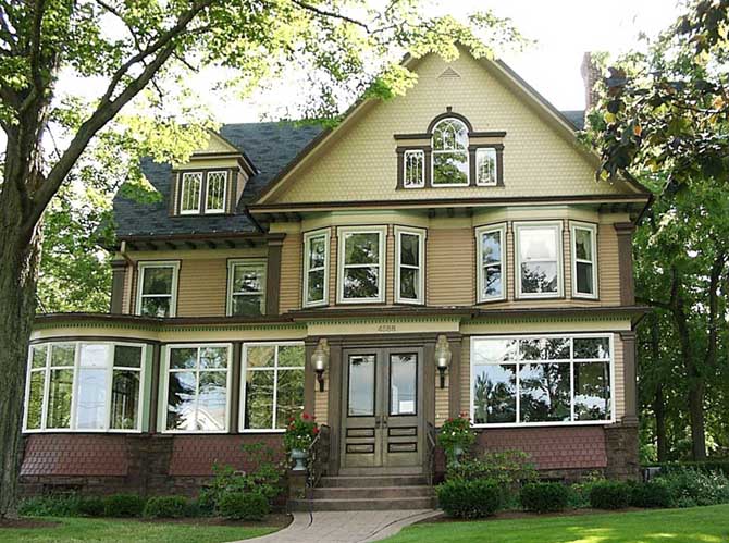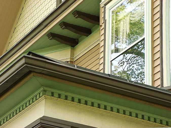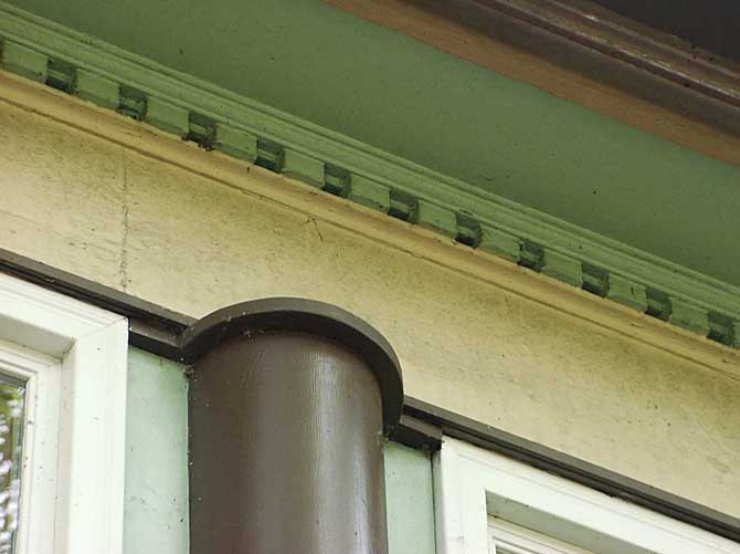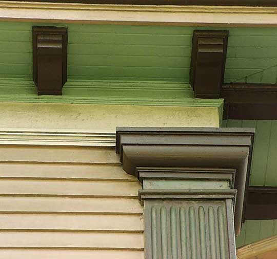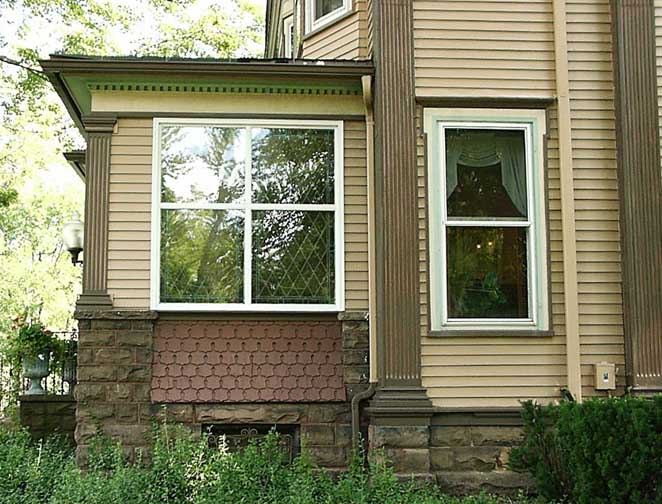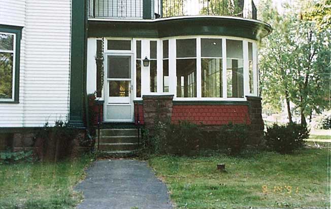![]() Pre-1991 drawing ![]() Pre-1991 photo ![]() 2002 photograph. Queen Anne feature: differing wall textures, including Medina sandstone and patterned wood shingles ![]() Pre-1991 photograph. Note the door that would be changed into a double door in 1991. ![]() 2002 photograph Front entrance. Note Palladian window in attic gable. ![]() 2002 photograph. Queen Anne brackets ... Dentil molding ![]() Pre-1991 photograph. Entrance removed in 1991 - see photo below ![]() 2002 photograph. In 1991 the west side entrance was removed, but the supporting stones were left intact both inside and outside of the house. ![]() 2002 photograph of west (left side of house) elevation. ![]() Pre-1991 photograph of north and east (rear and right side) elevations ![]() 2002 photograph indicating where the former east side entrance was. ![]() 2002 photograph (east side). Queen Anne features: Modillions ... Fluted pilaster ![]() 2002 photograph (east side). Queen Anne features: Dentils ... Engaged column shaft ![]() 2002 photograph (east side). Queen Anne features: Dentils ... Fluted pilasters ... Clapboards ... Wooden shingles ... Medina sandstone |