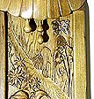 Side panel detail: central panel showing violet, rose, and chrysanthemum - all representing months of the year |