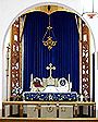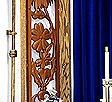 Memorial altar detail. Advent rose and reverse-twist pillar like that of the reredos on sides of main altar in church |