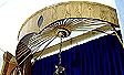 Aumbry (where reserve host is kept). Three Glastonbury roses with fronding |