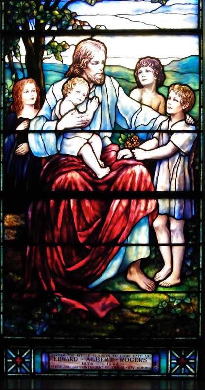 Lower panel - Christ With Children (Upper panel - Standing and Kneeling Angels) Luke 18:16, "Let the little children come to me, and do not stop them, for it is to such as these that the kingdom of God belongs." See Iconography in Art and Architecture: Christ with children LARGER SIZE beneath top photo) |