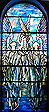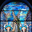 The ten windows in the nave are each comprised of two main panels separated by a smaller opalescent panel hidden from view by the balcony. The upper panels depict two angels; the lower panels depict scenes from the New Testament with the exception of the Old Testament Isaiah window.