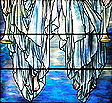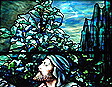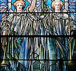 Six of the windows, including the one shown on this page, were designed and fabricated by Tiffany Studios.