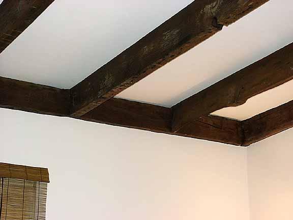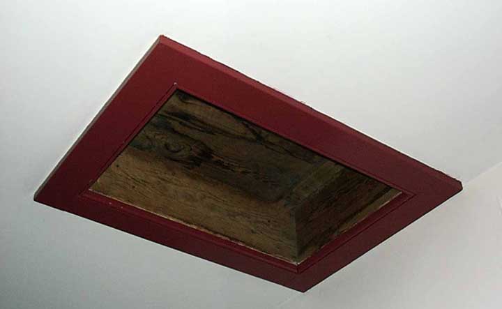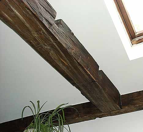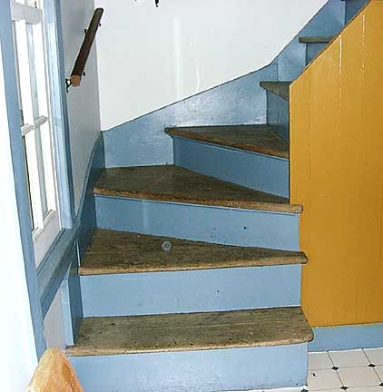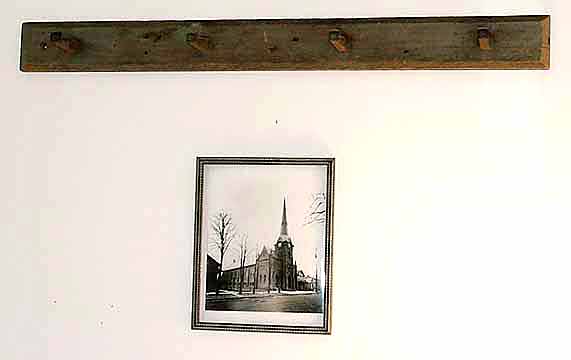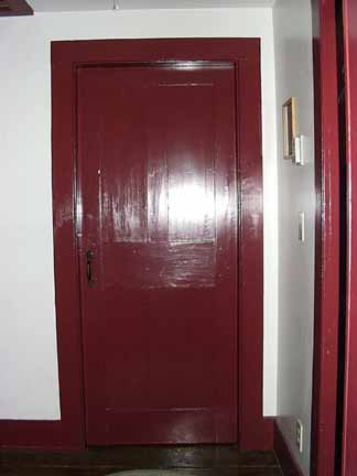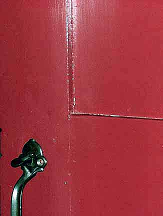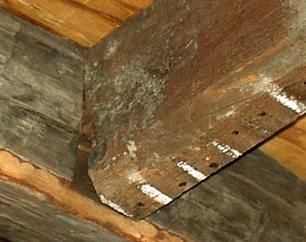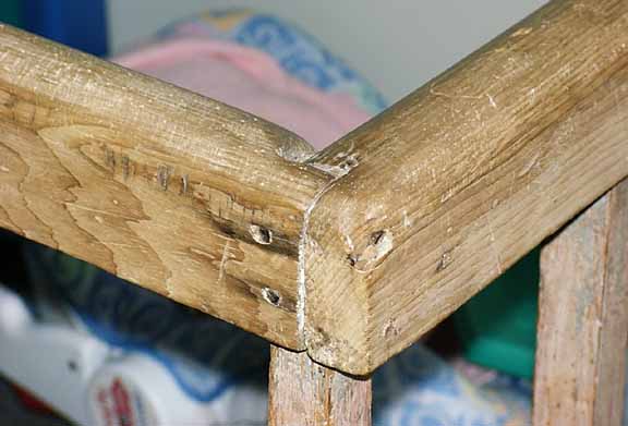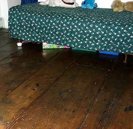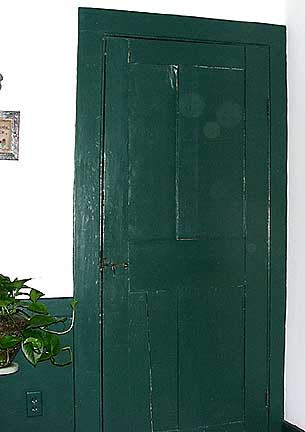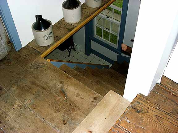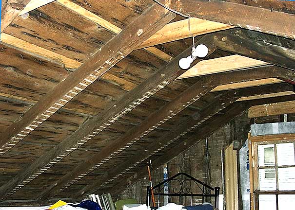 ![]() Stairs: original, although moved before 1989 from the back of house; the turn made them easier to climb. ![]() Looking down stairs from second story ![]() Stairs: original - not worth saving because treads chiseled and filled ![]() Hand railing: original; rare; cherry hand railing; pine spindles; originally painted. Detail below ..... Style: Federal ![]() ![]() Bedroom floor: original; width not uniform because hand hewn. This floor is varnished. ![]() Floor: original; unvarnished. ![]() Attic hatch: original ![]() Hook rail: original; hand-cut pegs used to hang clothing in bedrooms. Photo is of St. John's Church, 81 Amherst and this home. All three buildings are on the original 3/4 acre lot purchased by Augustus Porter. ![]() Close up of hand-cut peg ![]() Door: one of two original doors in the house that are in use. Authentic (as close as possible) color. ![]() Door: original; hand planed (starting about 1860 doors were sawn); no beveling with ogee molding. Authentic (as close as possible) color. ![]() Detail of last photo: no ogee molding on hand-hewn door ![]() Living room baseboard: original ogee molding used only in the more "public" part of the house ![]() Front door: original (although bottom cut down); Federal style: cross and bible pattern ![]() 2-panel batten door: original; probably from in front of the kitchen stairs ![]() Fireplace is not original to house, but is authentic to the 1830s. ![]() Bedroom : Originally, there was plaster under the beams. ![]() Bathroom ![]() Attic ceiling. Note hand-hewn ax marks. ![]() Split lathing and plank ![]() Plank: lathe holes were not in straight line to prevent splitting the grain ![]() Split lathe. Original. Process: 12"-15" high sheet nailed to wall. Grooves along grain chiseled out, then re-nailed and plastered. The owner has kept this wall intact for demonstration purposes. ![]() Beams: 32' long, 8"x8" hand-hewn timber beams with pegged mortise and tenon joists ![]() Upper half of joist rests in chopped out space in timber beam. 8"x8" hand-hewn timber beams; 3"x8" joists |