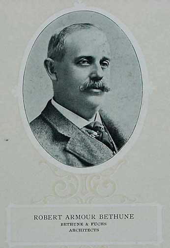 MarriageRobert Armour Bethune (photo), a Canadian-born draftsman and former colleague from R. A. Waite, became Louise's partner and husband in December 1881. The hiring of draftsman William L. Fuchs (photo), in 1882, seems to have coincided with the birth of Louise's only child, Charles William, in 1883. (Fuchs apprenticed in the office until 1883 when he became the third partner.)