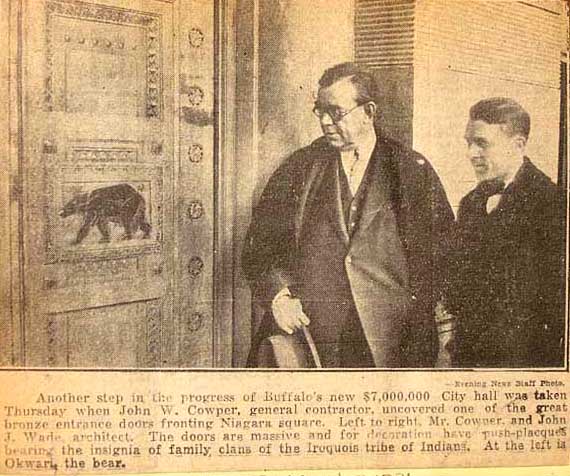 In 1926, when the City Architect's city hall design was found unsatisfactory, the Common Council turned to amiable, quick-witted, 33-year-old John Wade, who probably had more practical experience with the planning and design of city halls than any other local architect.John J. Wade, a young architect who had experience in the design of city halls, had written an article in 1925 in The Buffalo Arts Journal called "Choosing a City Hall Architect," which brought him to the attention of the Common Council. They hired him as a consultant architect for the design of City Hall, January, 1927. He formed a partnership with Buffalo architect George J. Dietel (1876-1974) to provide these services.