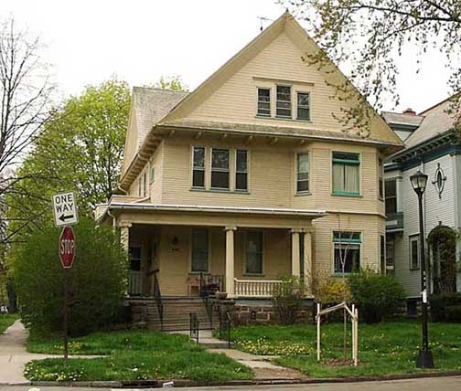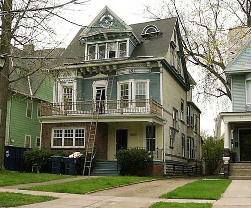 Behn House, 90 Norwood Avenue. This large two family house was built before 1898 for F. Behn and Carl Behn of the Buffalo Refrigeration Company. Note the unusual length of the house and the repeat of fenestration patterns on the first and second floors, indicating identical floor plans for each flat.