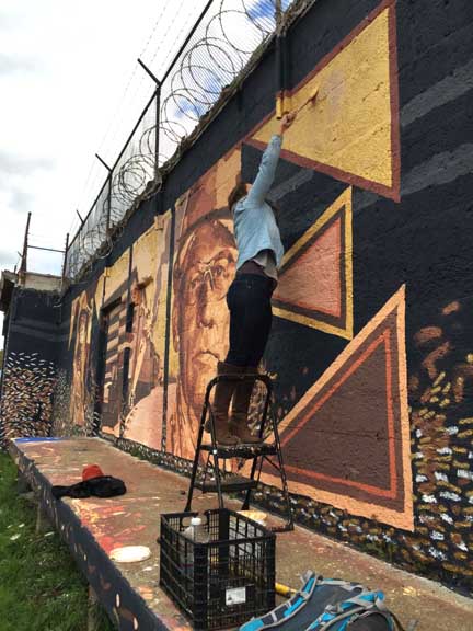 Team Razor Wire tries to adapt each mural to the specific community it will be located in. The local community will even come out to help paint the murals. Team Razor Wire is also trying to build more relationships with local artists. A current project with local artist Edreys Wajed is going to be painted on two buildings on either side of Bailey Avenue and E. Amherst Street, so that they will be facing each other. This piece has turned into an activism project to build a safer community. Originally there was no push button to cross the street here even though it is a crosswalk for daycare and a school. “The main thing is to try to use these murals to slow down traffic a little and make people think about the intersection instead of just whipping through the intersection,” Kameck said. They also want to paint the crosswalks connecting the two sides of the street to tie the two murals together. However the City of Buffalo has strict rules on using art to paint crosswalks, something which local art advocates are fighting to change.