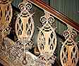 Guaranty: The main motif is a kind of oval pod or seed shape, which Sullivan used to suggest man's potential for spiritual and creative growth. The pod is sometimes superimposed on a rectangle and connected to it with stem-like filaments. | Carson: The cast iron ornament has been returned to its original reddish-green color after years of being painted gray. Sullivan intended the ornament to resemble oxidized bronze, an effect achieved by applying a coat of brownish-red paint and then applying a layer of deep green paint in such a way that the undercoat of red shows through in places. |