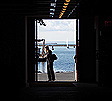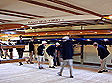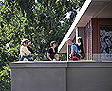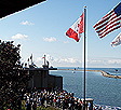 Crew on roof stationed to hoist flags during the dedication ceremony |
