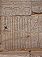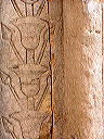 The king is identified by his regalia and by his names, which appear close to his head in elongated oval shapes called cartouches; many of the cartouches simply read "pharaoh." This king was actually Caesar Augustus of Rome, who, as ruler of Egypt, had himself depicted in the traditional regalia of the pharaoh. Augustus had many temples erected in Egyptian style, honoring Egyptian deities. This small temple, built about 15 B.C.E., honored the goddess Isis. |
