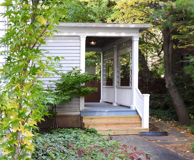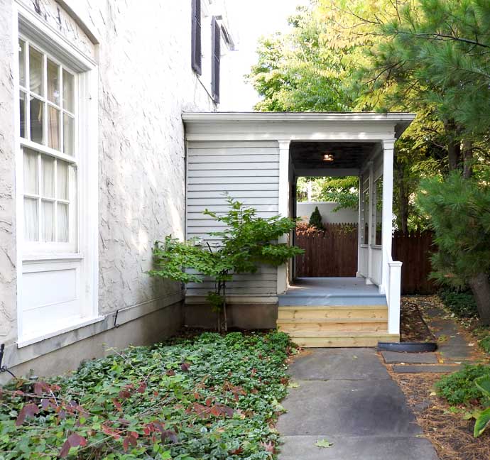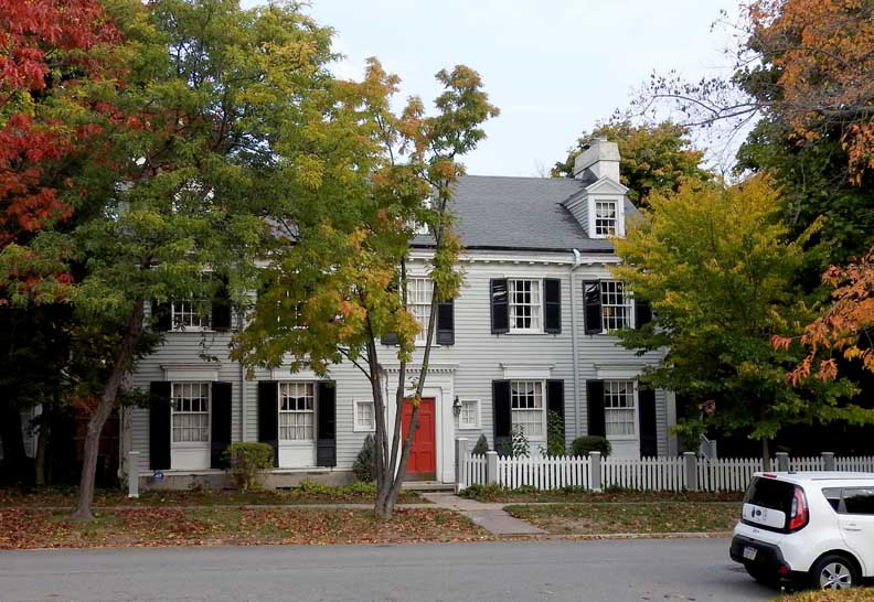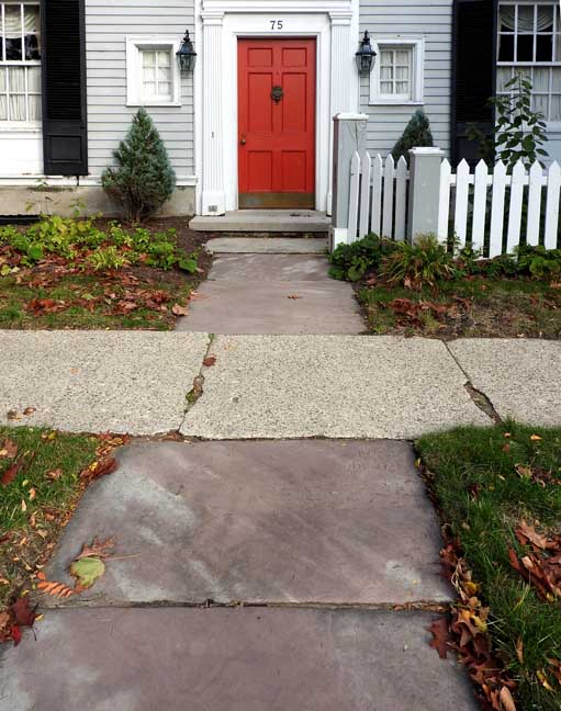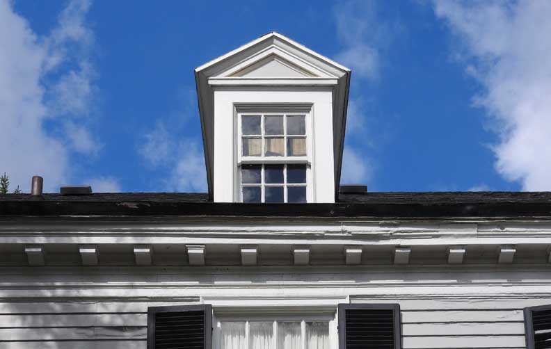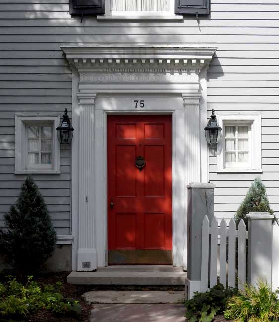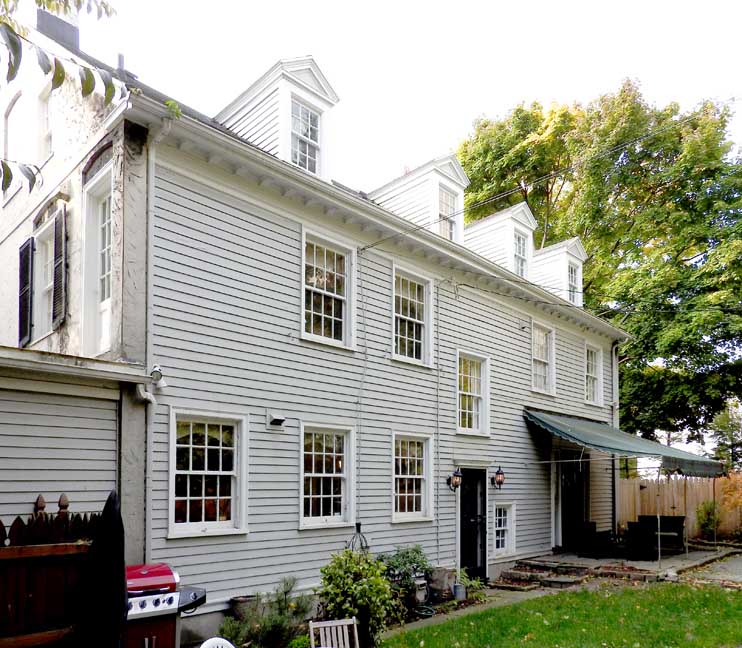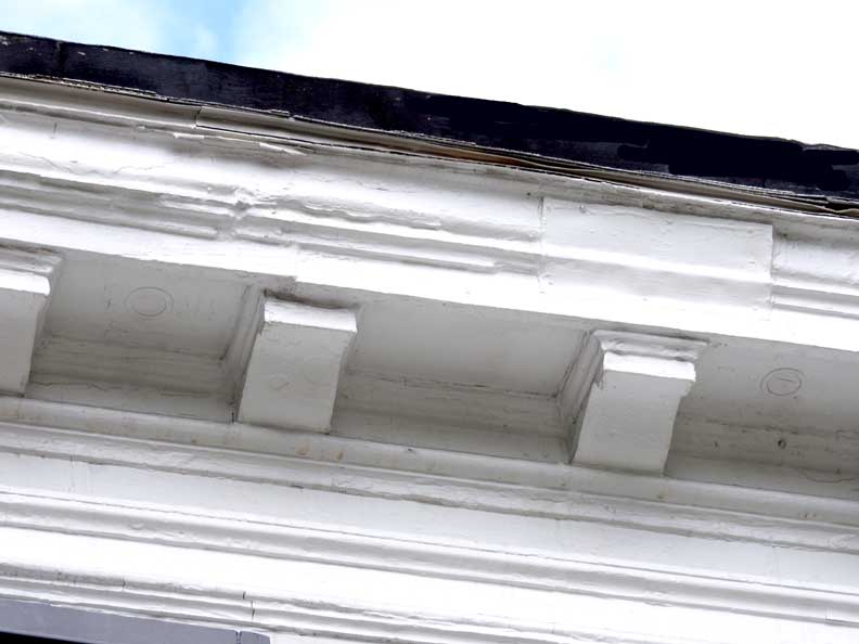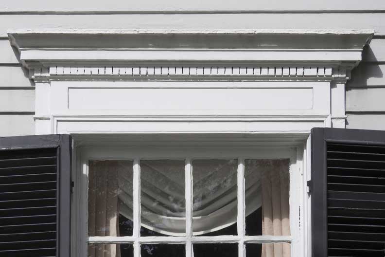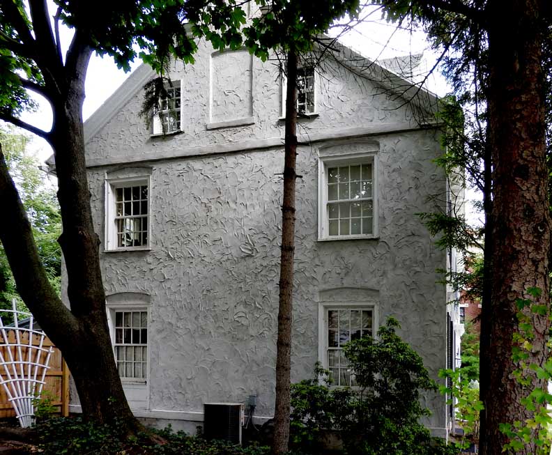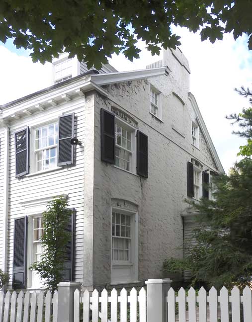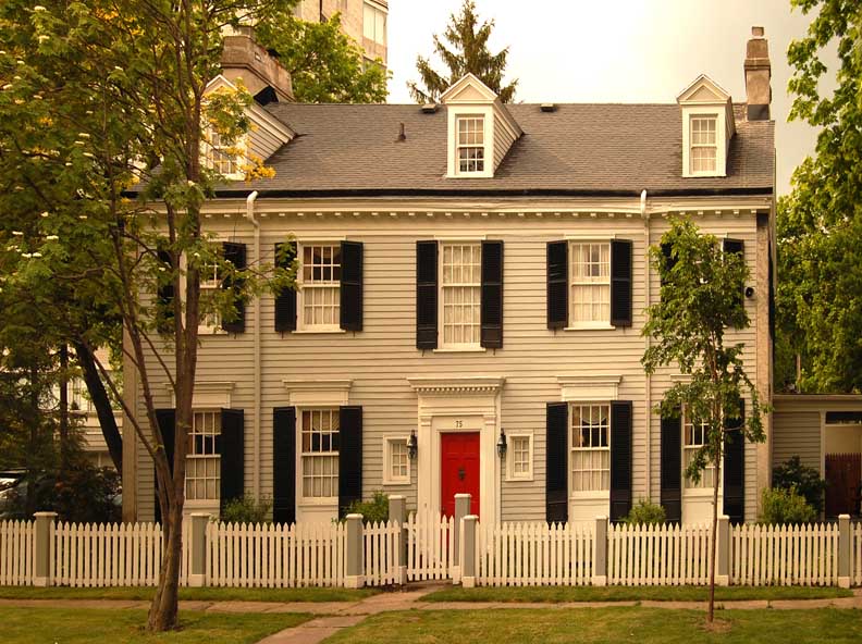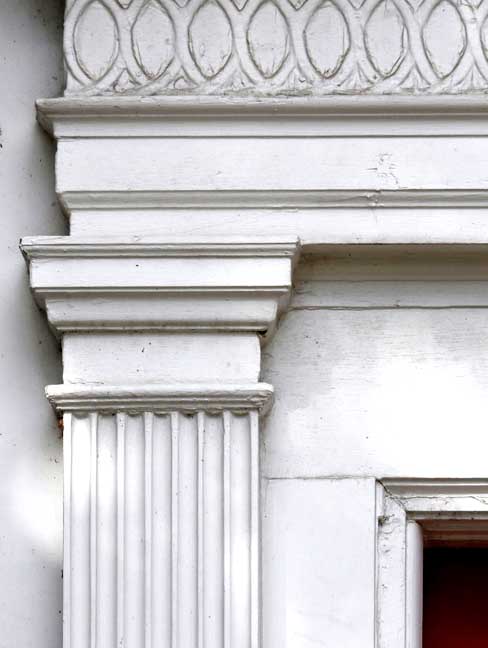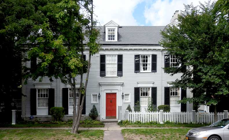 ![]() 2012 photo ... All photos below taken in 2016: ![]() Summer 2016 photo ... All photos below also taken in 2016 ![]() Autumn 2016 photo ![]() Typical Federal / Colonial style pedimented dormer with six over six lights ... Modillions ![]() ![]() Modillions ![]() Eight over twelve lights ... Small panes of glass mimic the technology in Colonial times ![]() Classical entablature in window surround (detail below:) ... Eight over eight lights ![]() Entablature includes dentil molding above paneled frieze ![]() Note Medina sandstone sidewalk ![]() Main entrance, detailed below: ![]() Small block modillions over dentil molding and decorated frieze ... Fluted Tuscan style pilaster ... Paneled door ... Separated side lights ![]() Decorated frieze ... Fluted Tuscan style pilaster ![]() Left side of house (west elevation) ... Note symmetry. 'The plaster on the West side of the house was replaced last year [2015] due to it buckling away from the frame, while the east side retains most of the original plaster. The chimneys have been rebuilt and you can see the repair." - Craig Drabik ![]() Left side of house (west elevation) ... Eight over eight lights ... Sash window ![]() ![]() Right side of house (east elevation) ![]() East elevation detail ![]() East elevation detail ![]() ![]() |