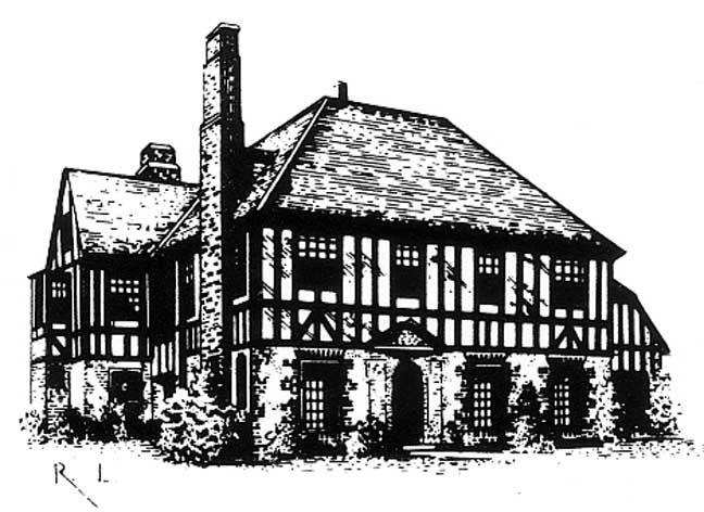 Picturesque style, featuring half-timbering, many gables, large chimneys and windows with many small panes in leaded casements.