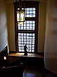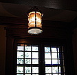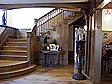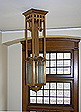 Landing, entry hall staircase: note "S" for "Statler" on hanging light fixture |