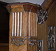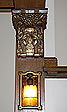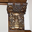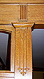 Newel ornamented with Arts & Crafts stylized Greek triglyph and guttae |