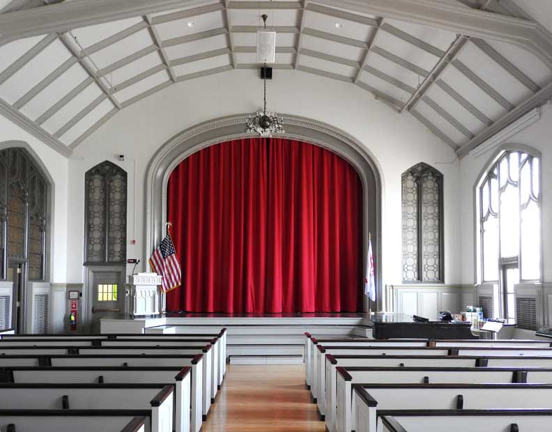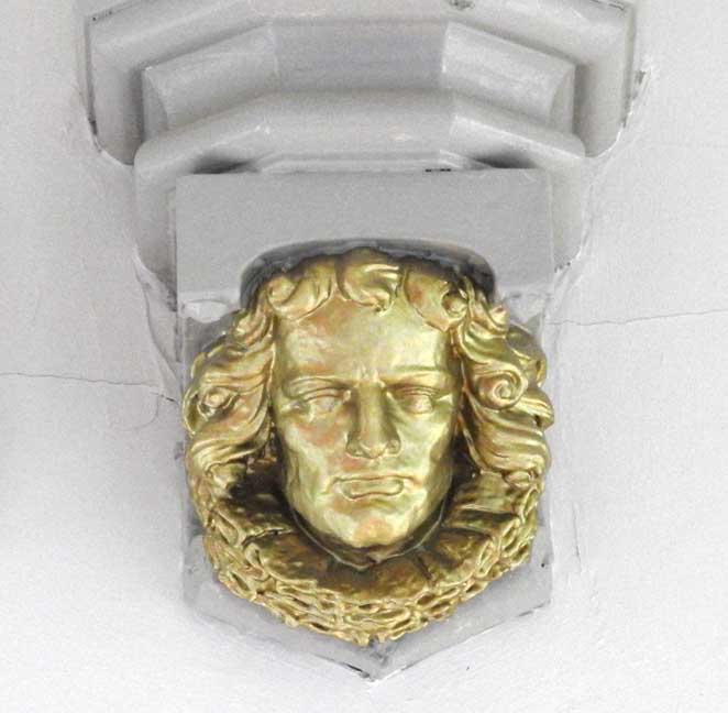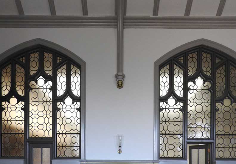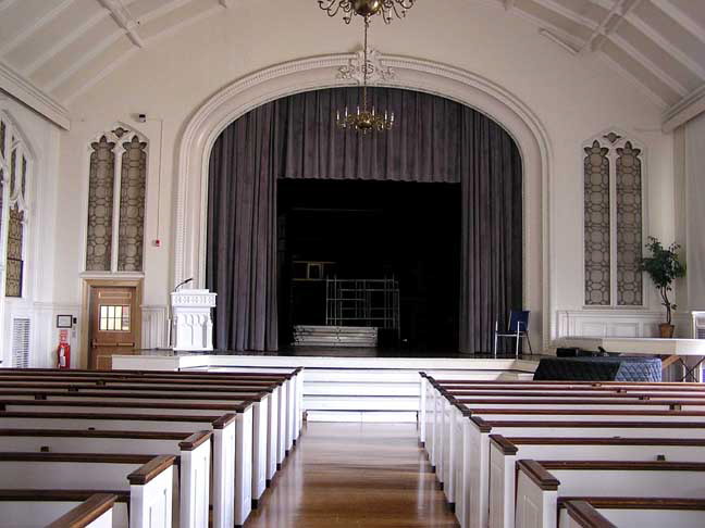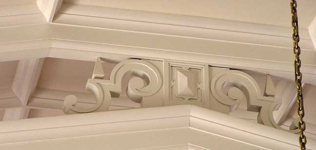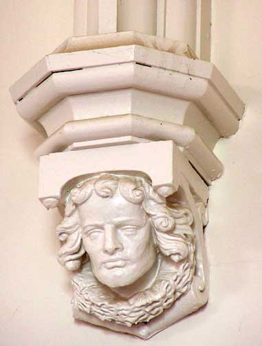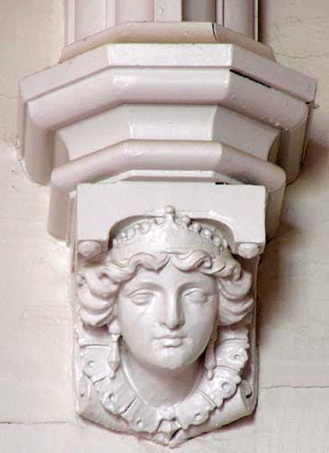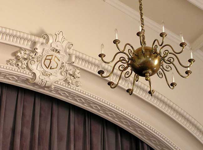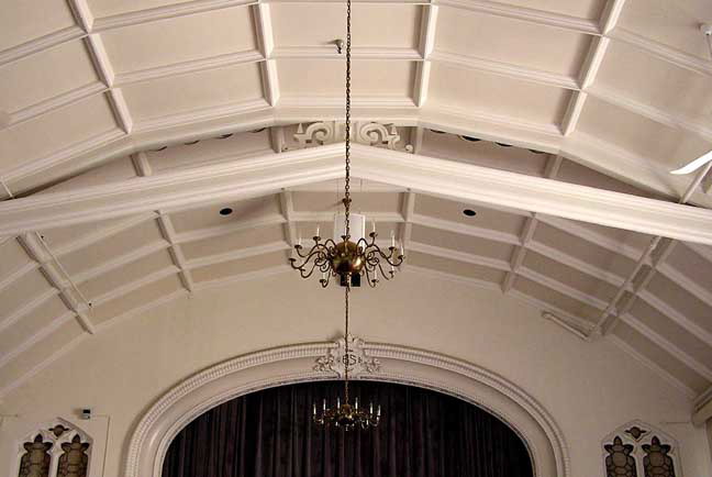 2004 photos![]() Proscenium stage ... Note podium left of curtain ... 2004 photo ![]() Coffered ceiling. Note strapwork ornamentation and chandeliers ... 2004 photo ![]() Strapwork ornamentation in the shape of a Flemish scroll ... 2004 photo ![]() Plaster cartouche and brass chandelier ... 2004 photo ![]() Proscenium ornamentation ... 2004 photo ![]() 2004 photo ![]() Traceried windows, some with cinquefoil pattern ... 2004 photo ![]() Plaster carved corbel supporting arch brace ... Note carved face on corbel ... 2004 photo ![]() Plaster carved corbel ... 2004 photo ![]() Plaster carved corbel ... 2004 photo |