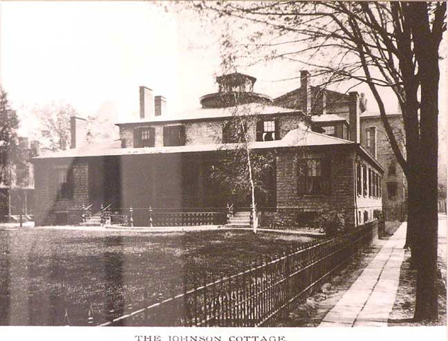 Evergreen Cottage (1814) was the house built by Mayor Dr. Ebenezer Johnson. It served as the 1851 school.