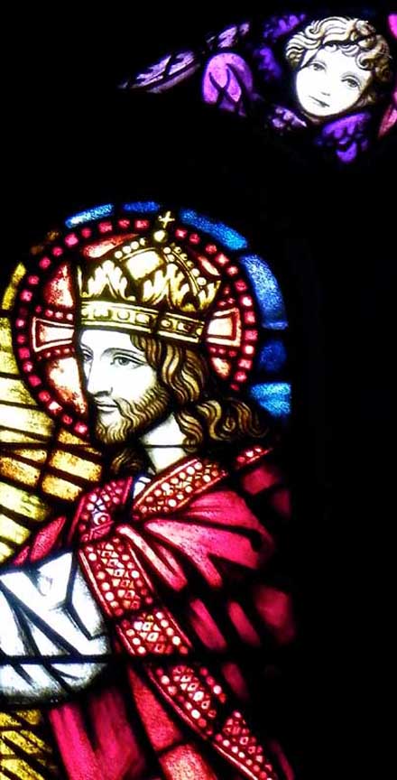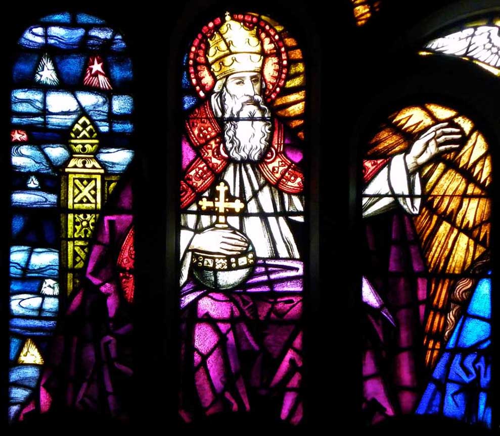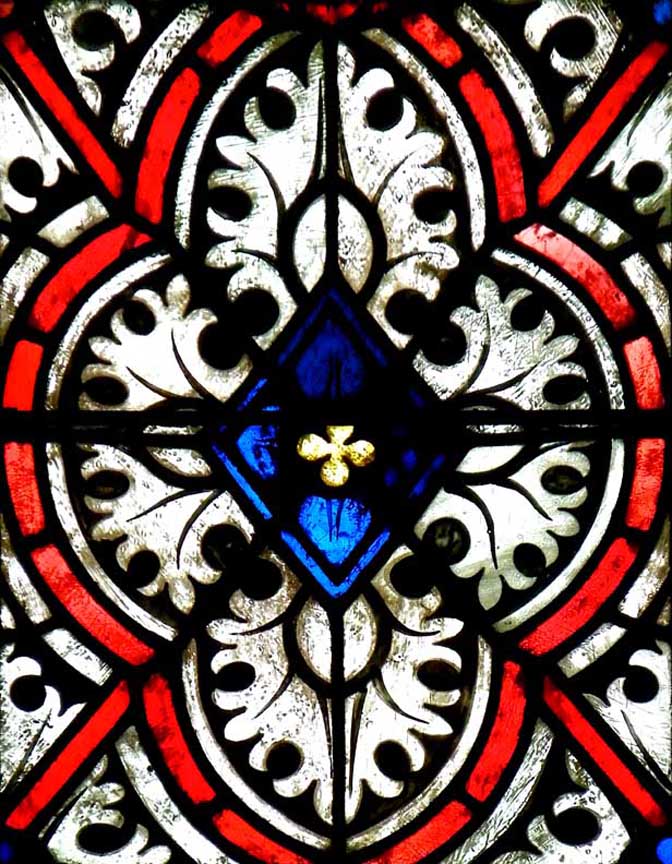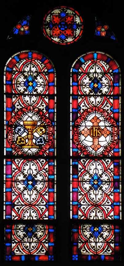 The clearstory window shown below is only one of the ten clearstory windows (2-panels united by a circular panel above) that are in the church.