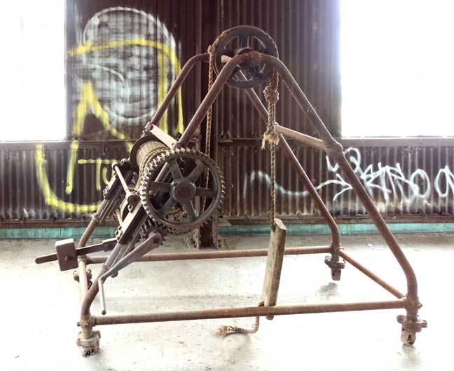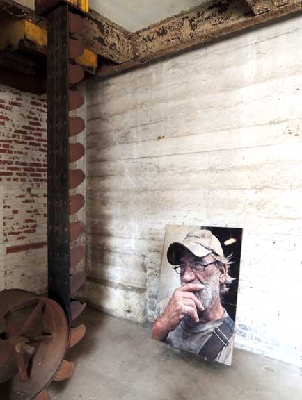 Mainhouse First Floor Wall-size photos wheat pasted on wall. For additional photos, see 2012 City of Night Party. ![]() Far left: painting Left: Metal lofter leg Center: Photo leaning against wall is that of Silo City steward "Swannie Jim" Watkins. Far right: Wall-size photo - perhaps not a scene from Buffalo - wheat-pasted on wall by Max Collins. ![]() Left: Lofter (see next photo below) Right: Photo of Silo City steward "Swannie Jim" Watkins by Max Collins. ![]() Detail of a lofter. Lofter definition: Internal