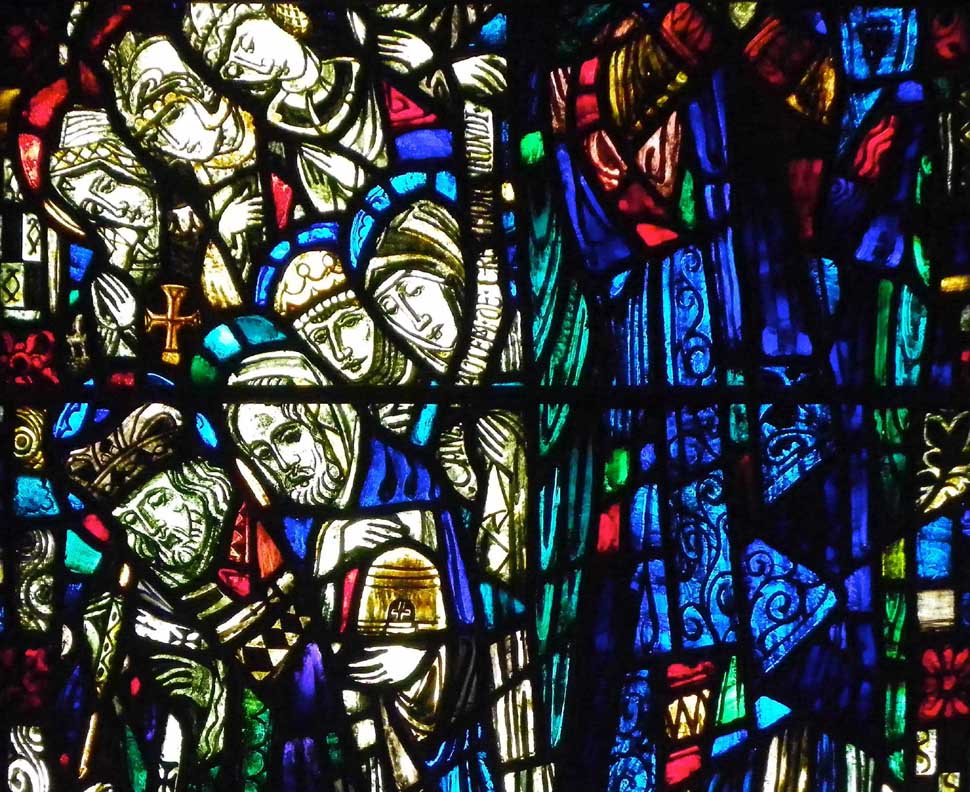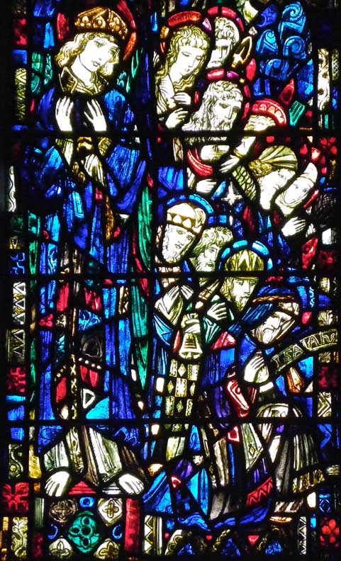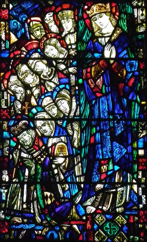 St. Augustine of Canterbury, St. Columba of Iona, St. Martin of Tours, St. Hilda of Whitby, ... Also included are St. Alban; Geoffrey of Boulogne, the Crusader; and St. Helena, mother of Constantine the Great. ... Detail below: