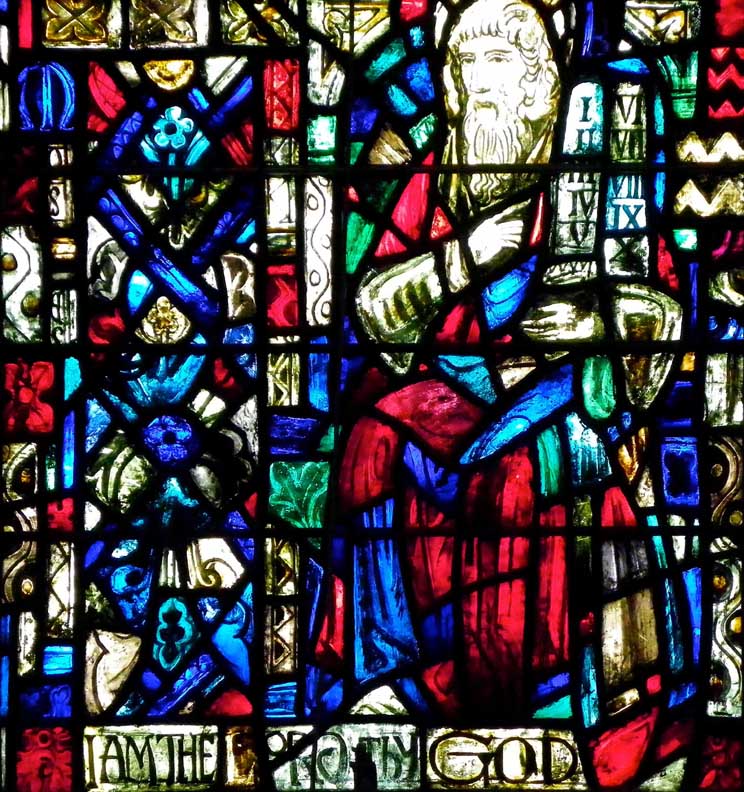 Left base scene: Moses with the Ten Commandments, "I am the Lord thy God" (Exodus 20). ... Iconography in Art and Architecture: Moses and the Ten Commandments